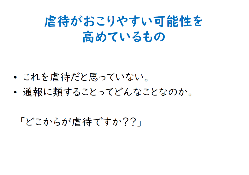 伊藤さんは、「どこからも虐待につながる」とお話されます。
